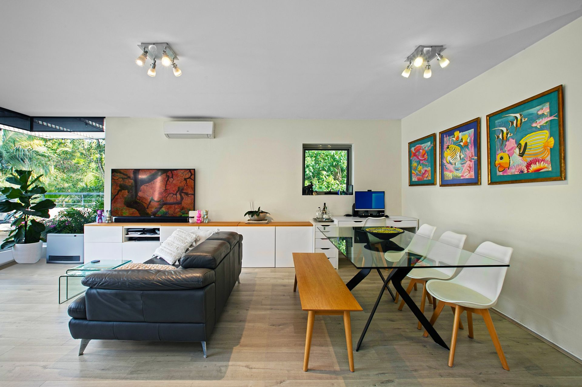 * Engineered timber flooring and modern lighting